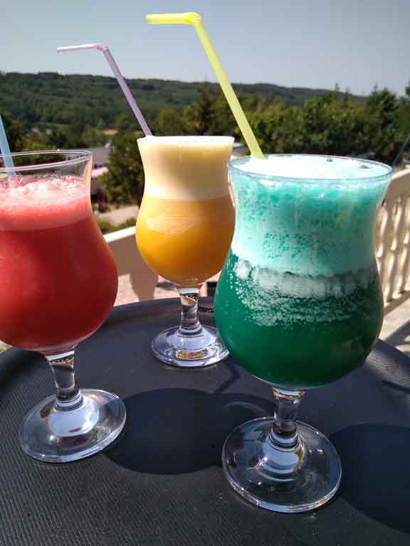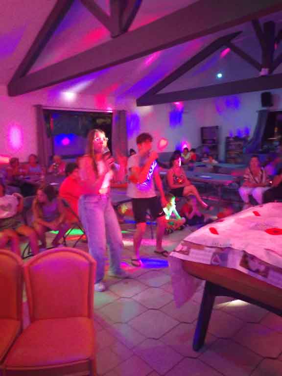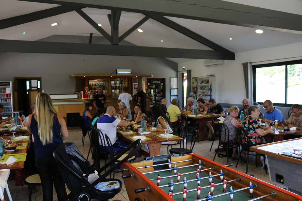 En juillet-août , nous proposons essentiellement du snack ( pizzas, frites, beignets, nugget’s, croque…), ainsi que des repas à thème (paella, moules-frites, soirée cocktail…)