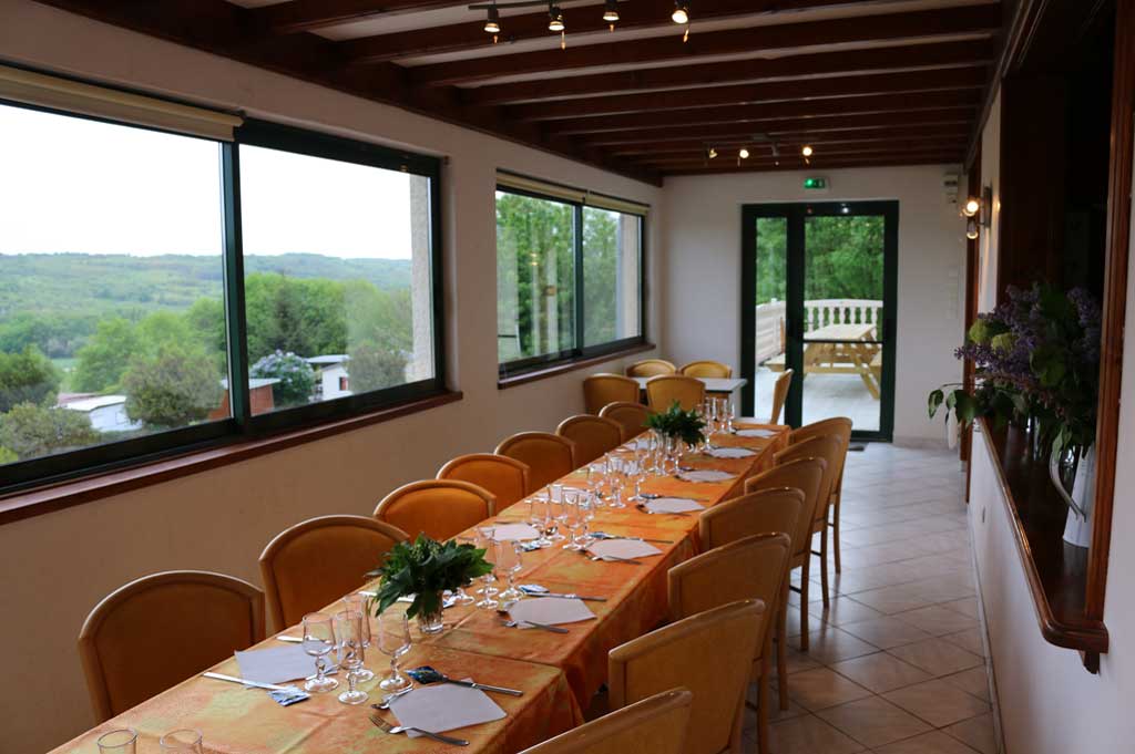 Le restaurant du camping La Bissera dispose d’une grande salle où les repas peuvent être préparés pour un maximum de 60 personnes .